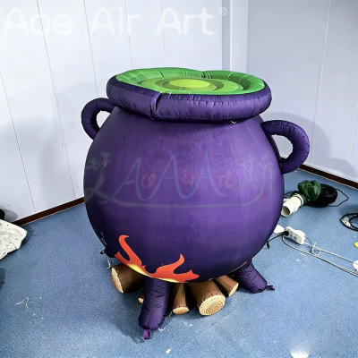 Inflatable Halloween Witch Cauldron Prop with Fire Design for Party Decoration Indoor Outdoor Use