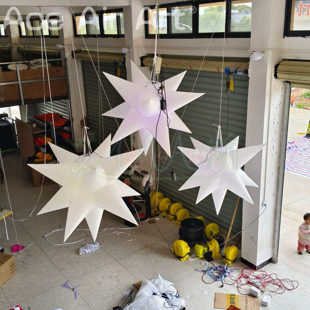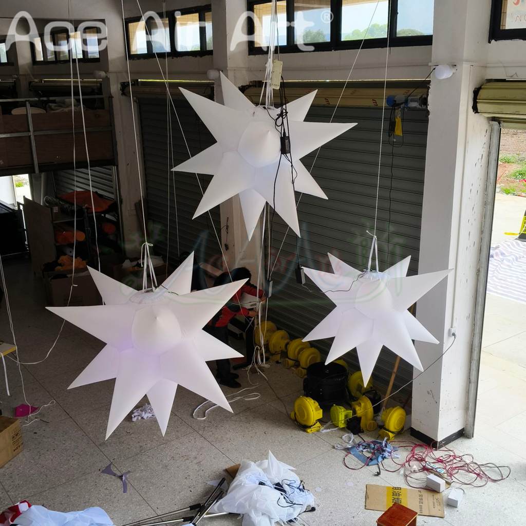 Inflatable white stars x 3 with led lights CE/UL standard Air blower Storage bag Led light system and remote controller |
