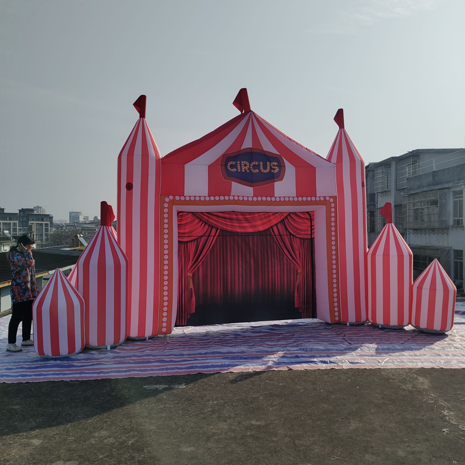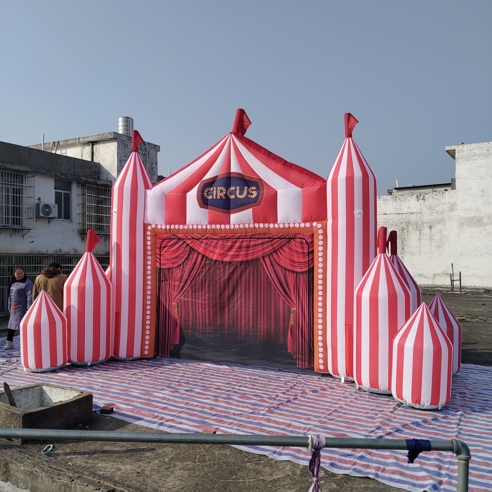 Inflatable Circus Arch CE/UL standard Air blower Storage bag Ropes and sandbags |
